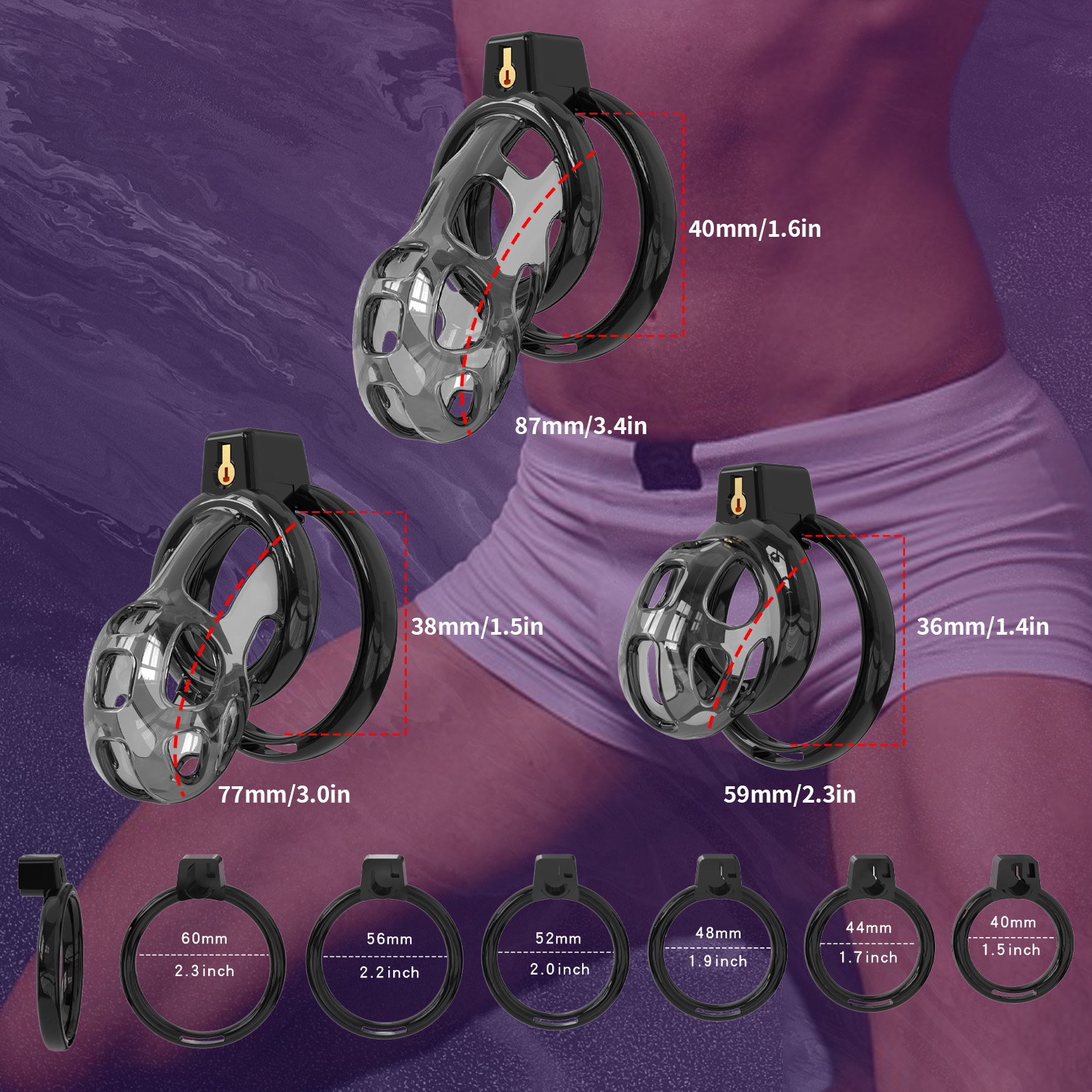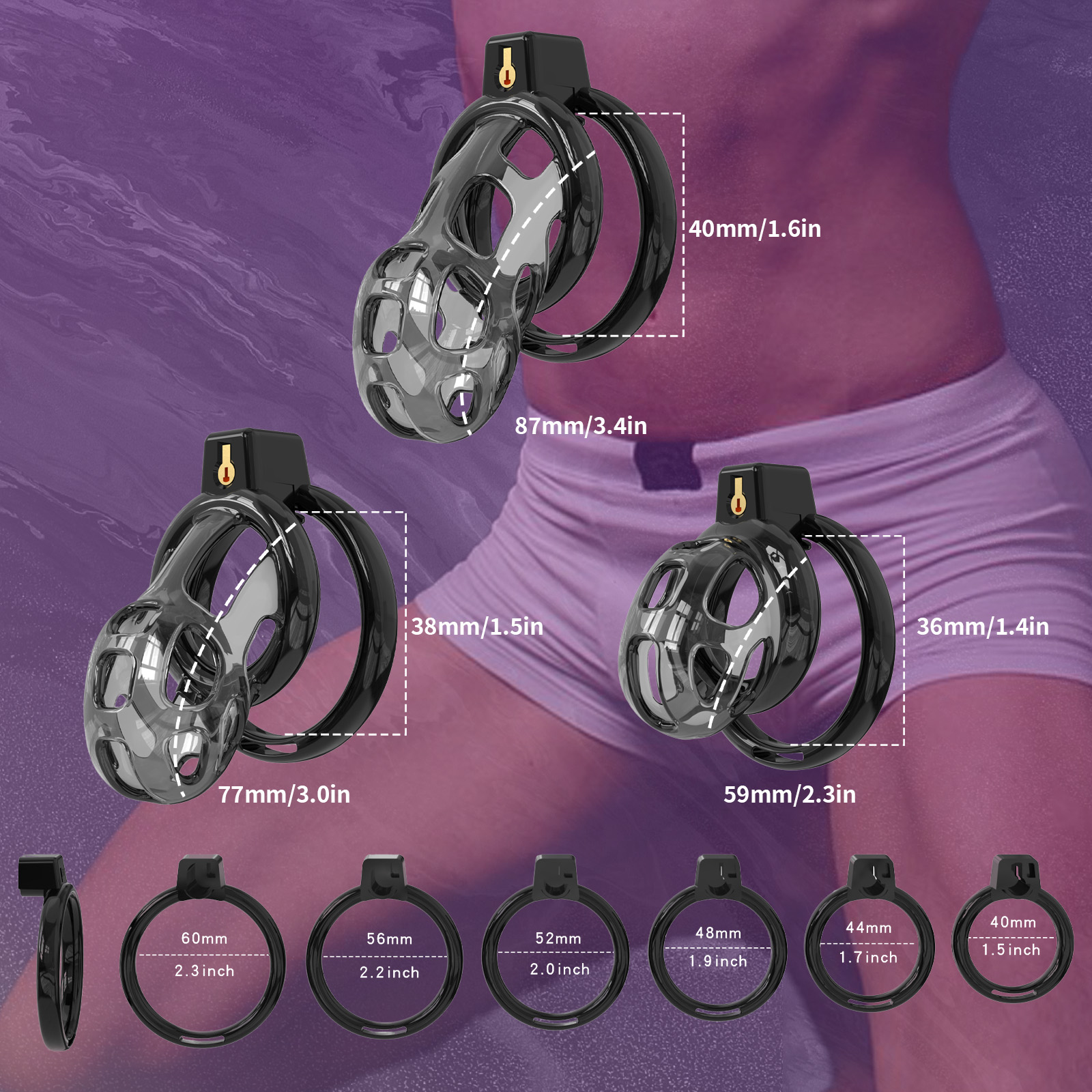 Male Chastity Cage - Lightweight Chastity Cage for Men with 6 Sizes Rings Chastity Device Adult Sex Toy for Man - Cock Cage(Black)