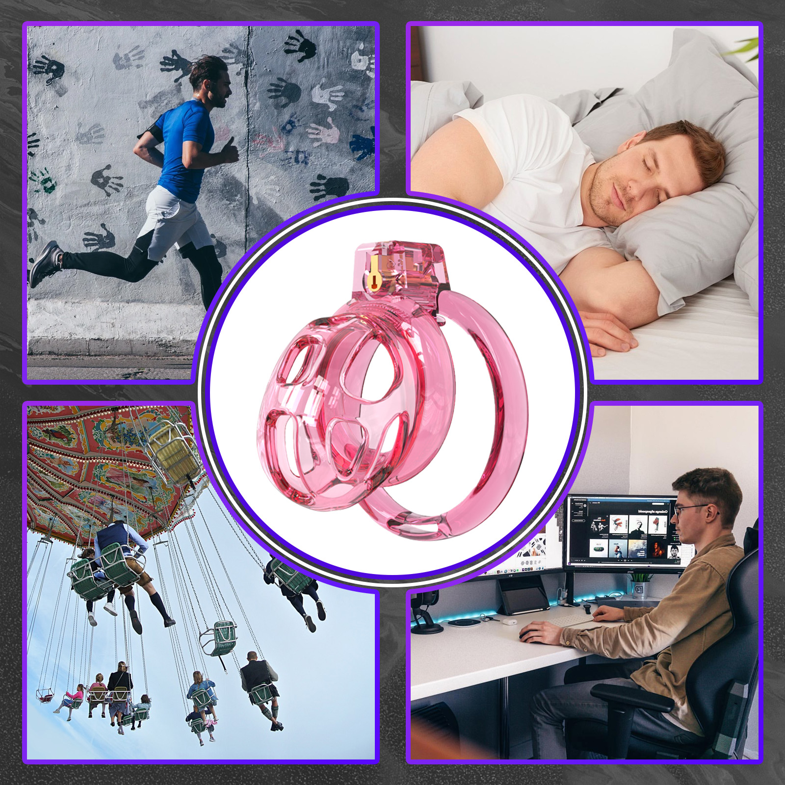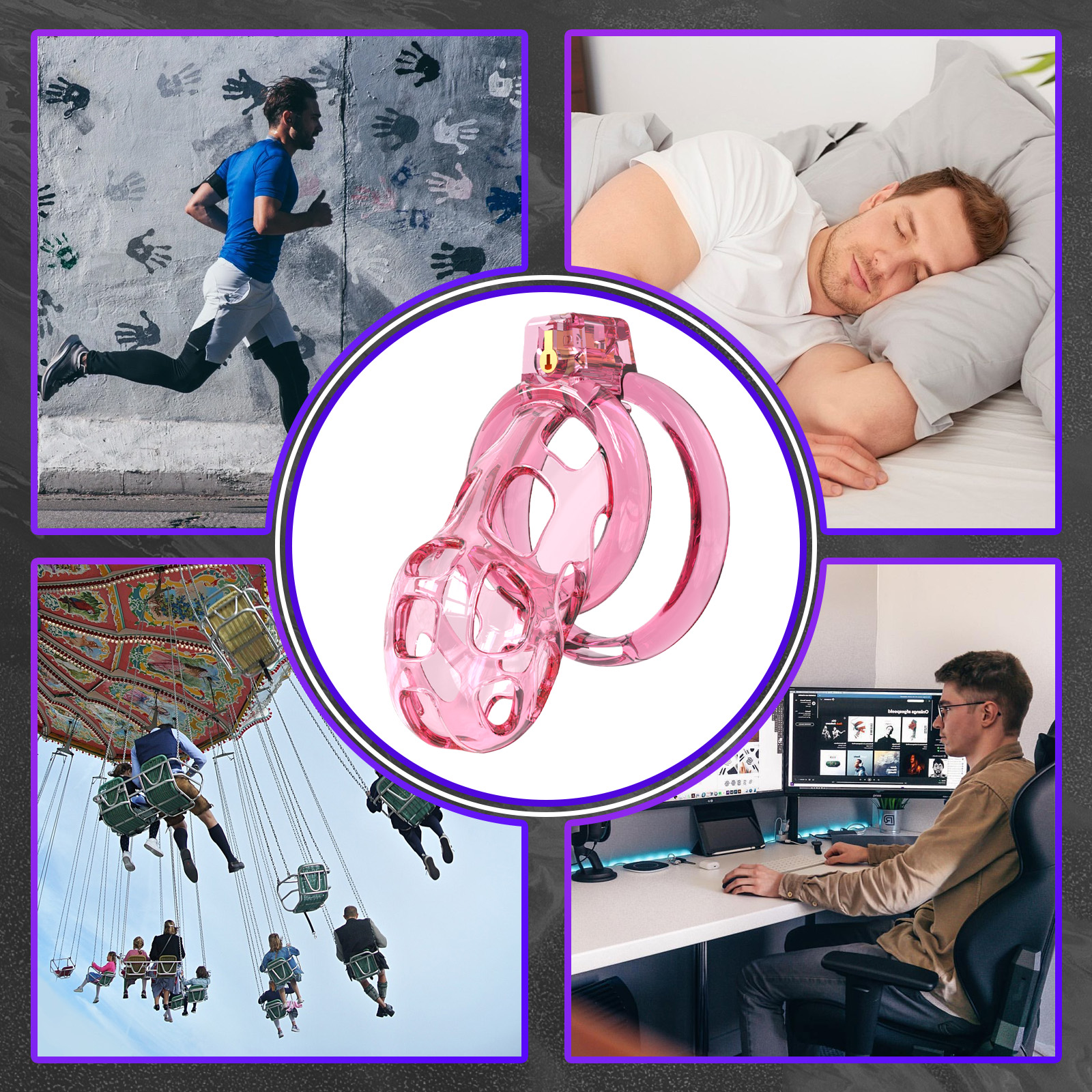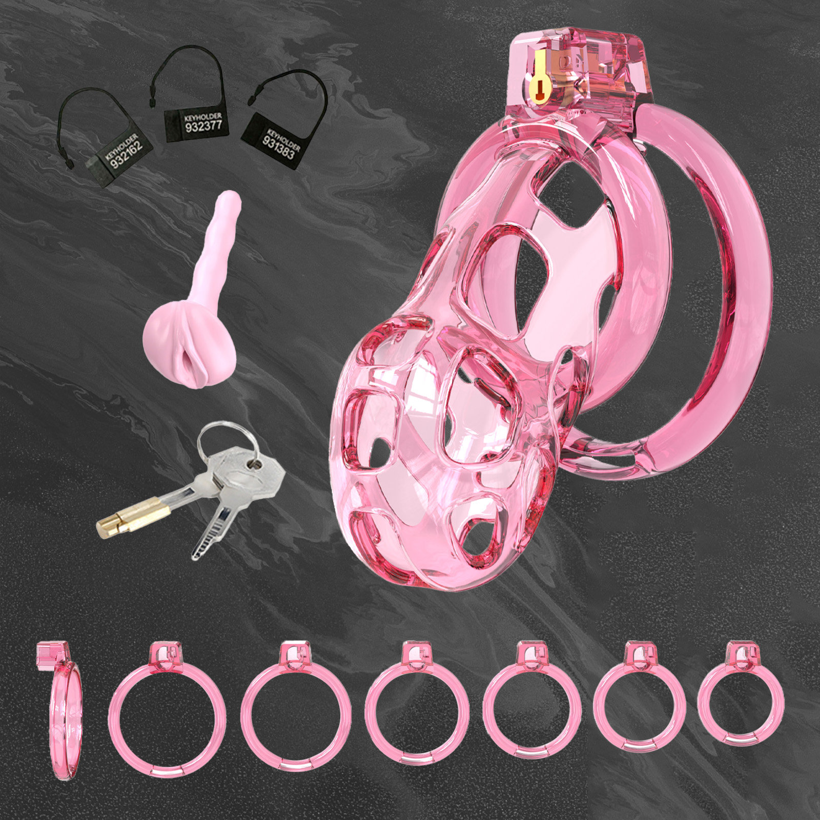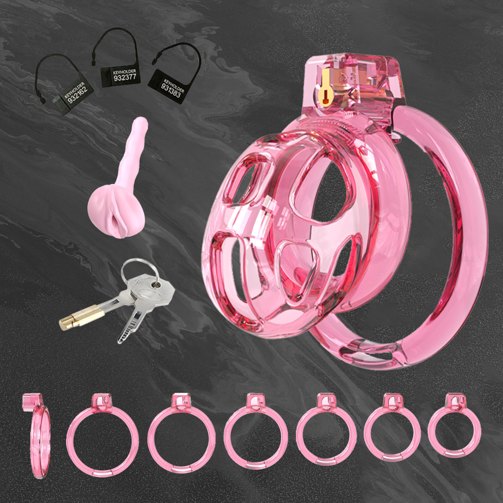 Male Chastity Cage - Lightweight Chastity Cage for Men with 6 Sizes Rings Chastity Device Adult Sex Toy for Man - Cock Cage(Pink)