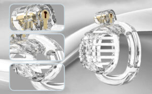 Buy the 3D Printed Clear Chastity Cage for Men. Comes with 4 adjustable rings and waist belt for comfort. Order now from Rupipichastity!