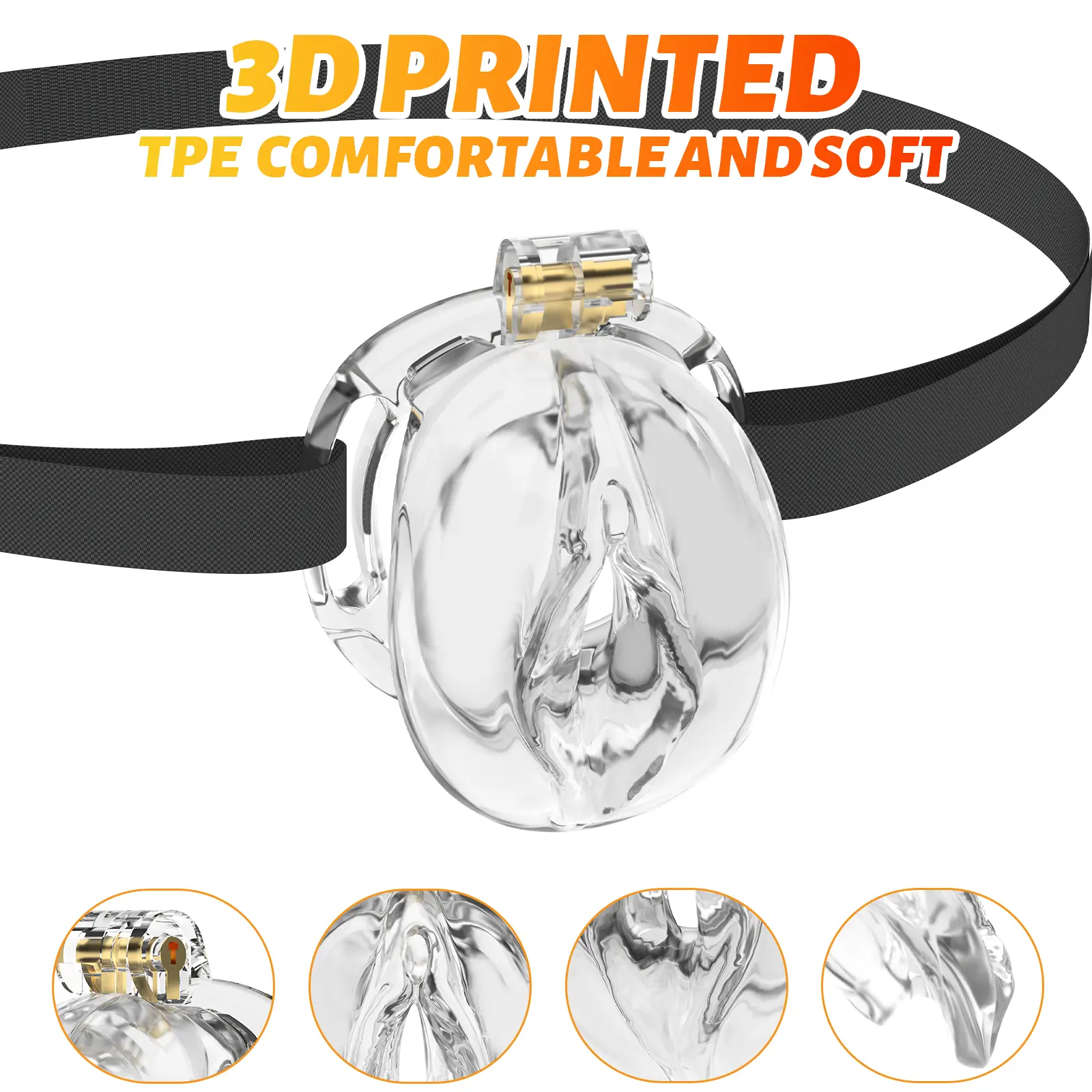 3D Printed Male Chastity Cage, Soft TPE Material,6 Ring Sizes& Accessory , Sissy Style,(Transparency)