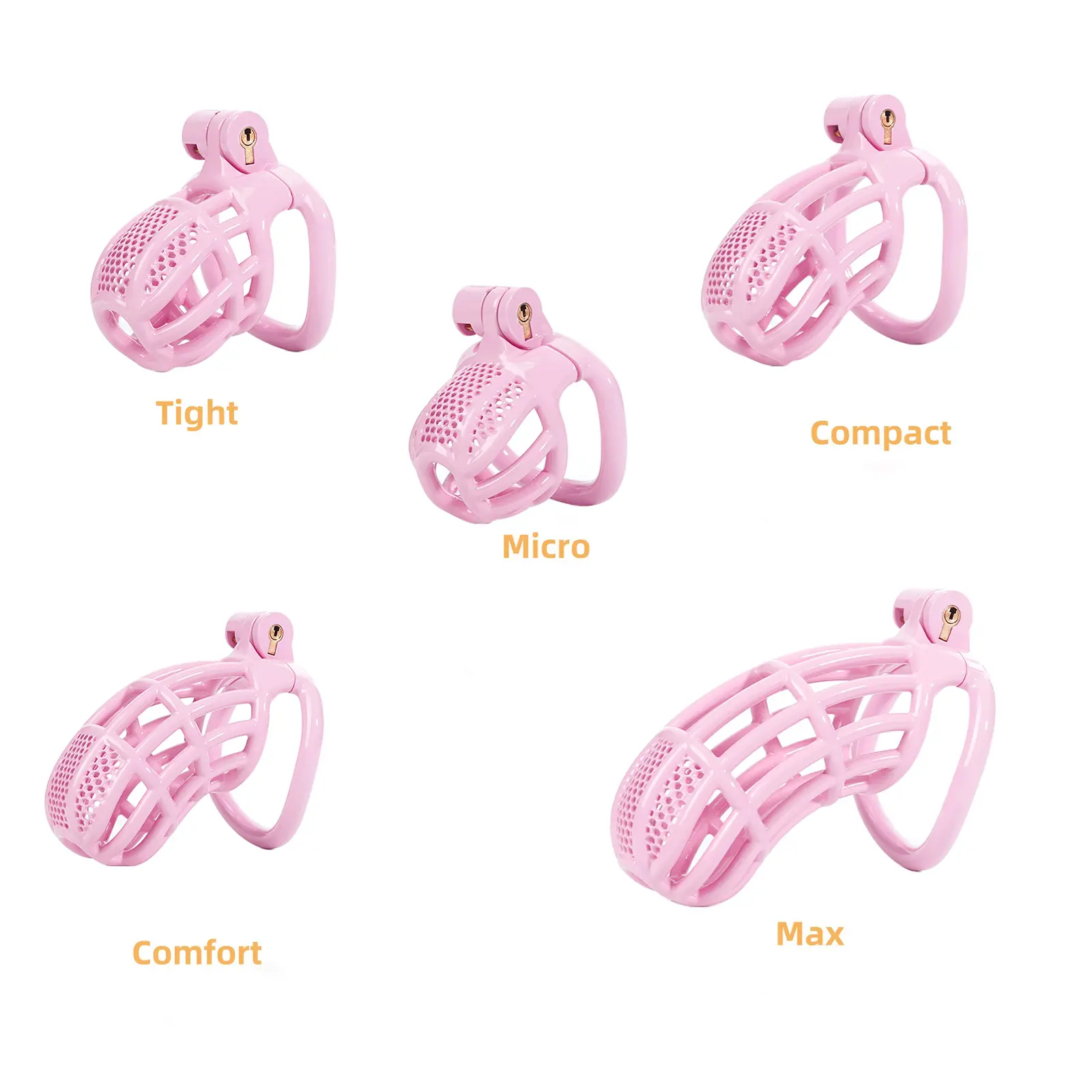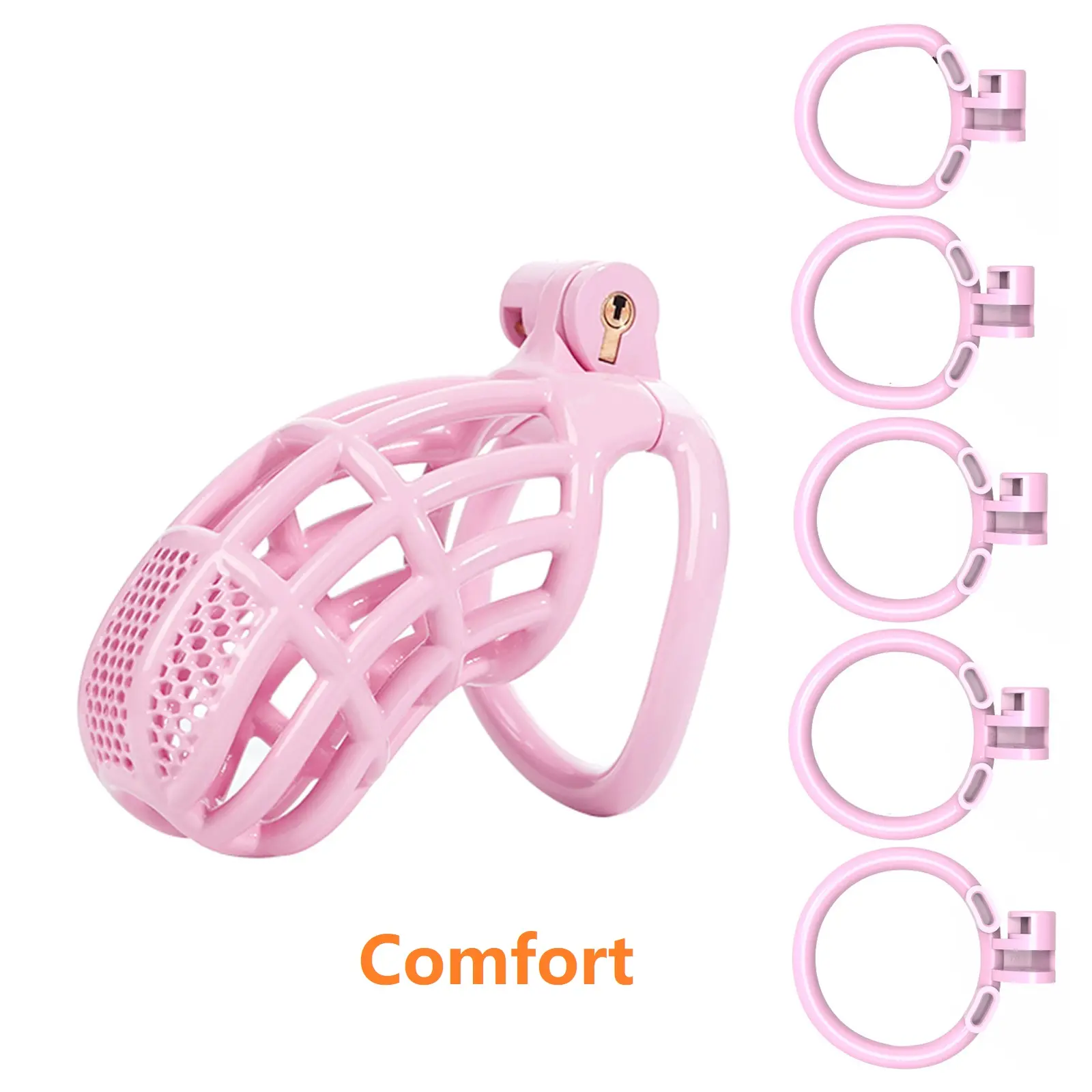 This chastity cage is designed with a lightweight concept. Compared to the heavy metal models, it offers better comfort during long-term wear. This plastic material has a smooth texture and hardly causes irritation. Its ventilation structure is convenient for cleaning and also enhances air circulation, further improving the comfort of wearing. This set comes with four different base ring sizes, allowing you to have plenty of options to find the one that suits you best. The locking mechanism is simple yet efficient, and the included key operates smoothly without any stalling. It performs very well in daily use, but compared to heavy and high-strength chastity devices, it doesn’t feel as sturdy. The bright pink color is exactly the same as the color in the product pictures, making this chastity cage less intimidating. Overall, if you prefer lightweight and easy-to-wear products, this choice is quite good, even though it is not the most durable option on the market.