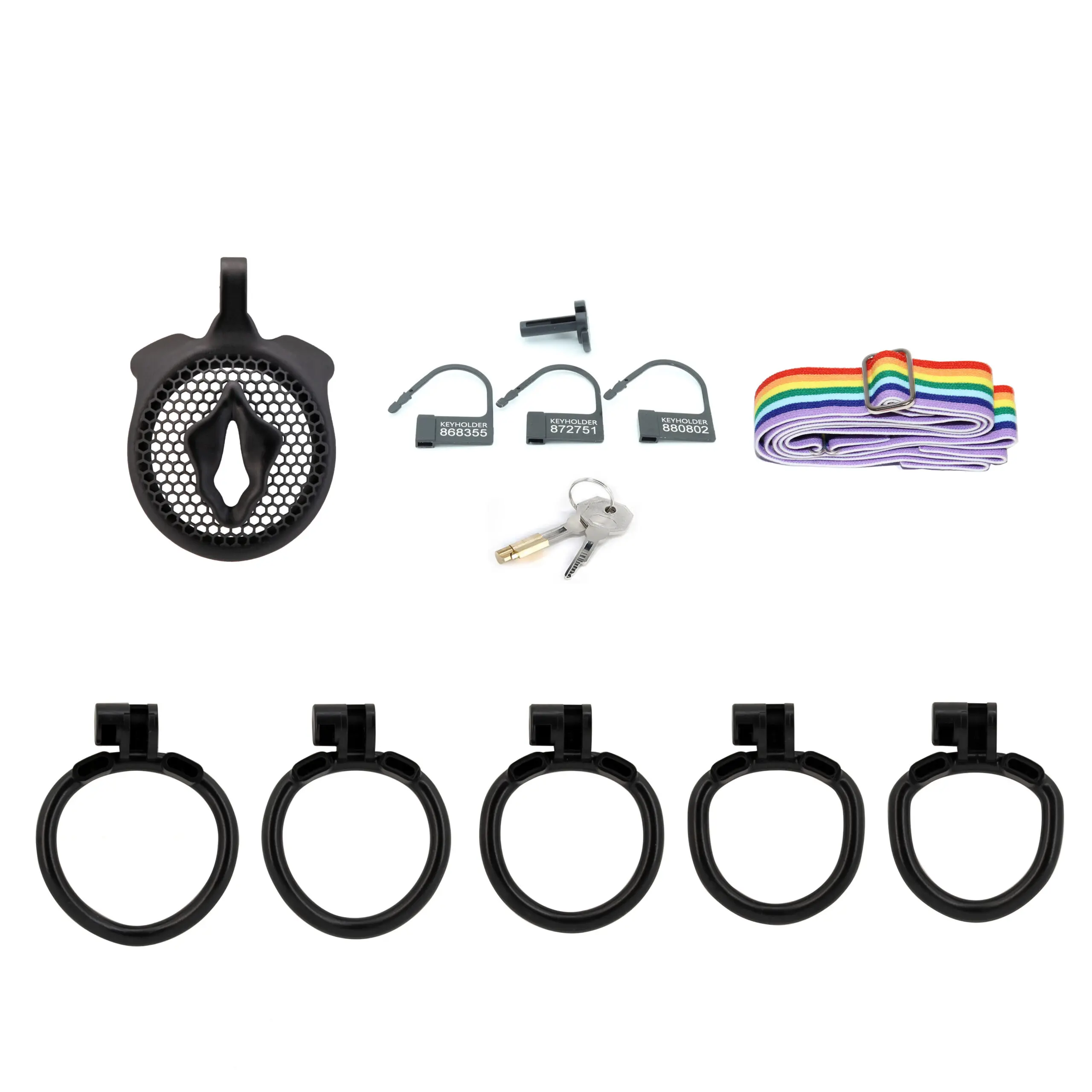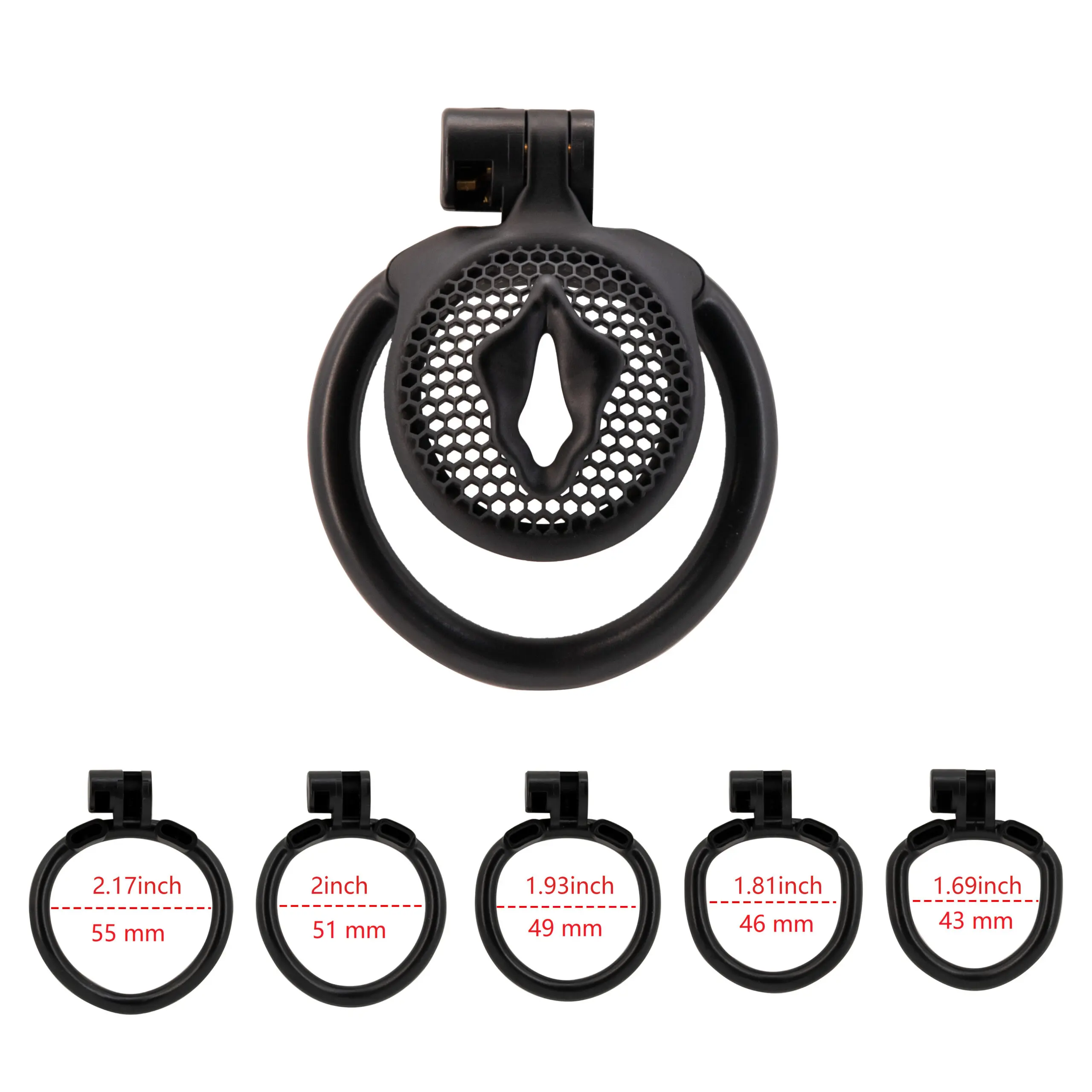 【5 Sizing Rings】:This chastity cage comes with 5 differently sized rings , ensuring a fit for all body types.