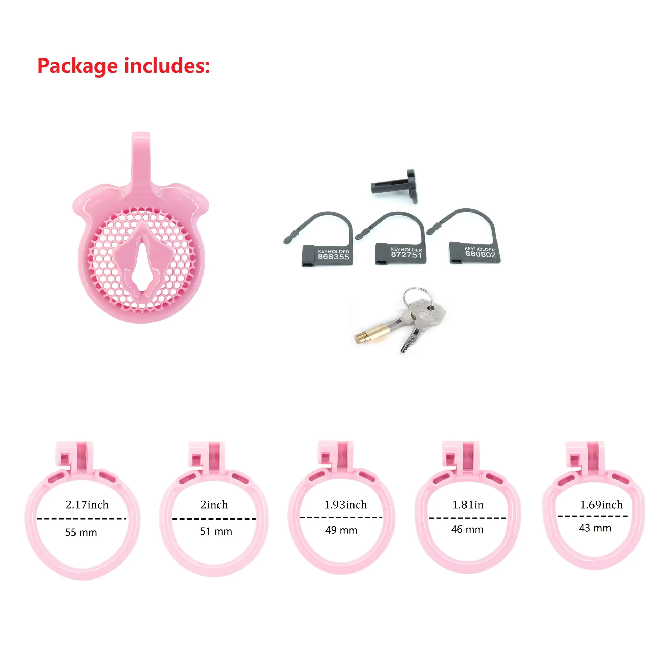 【5 Sizing Rings】:This chastity cage comes with 5 differently sized rings , ensuring a fit for all body types.