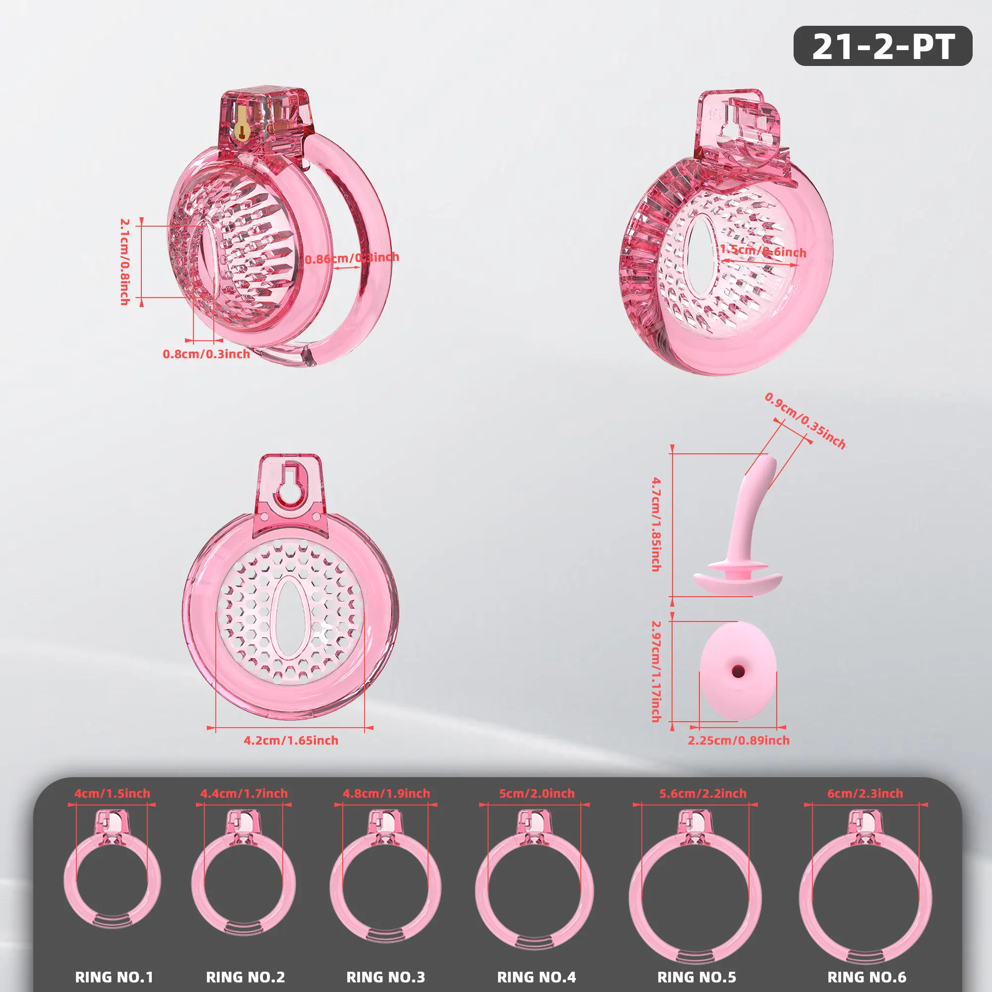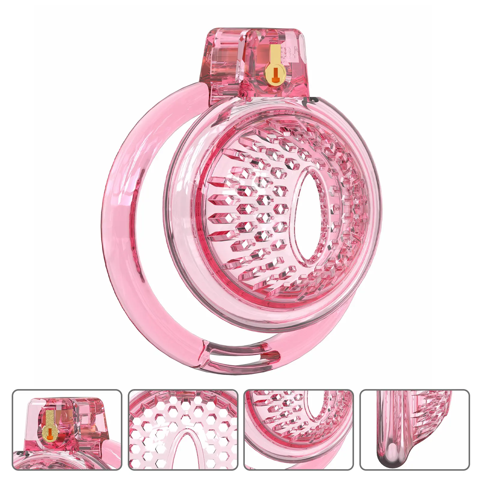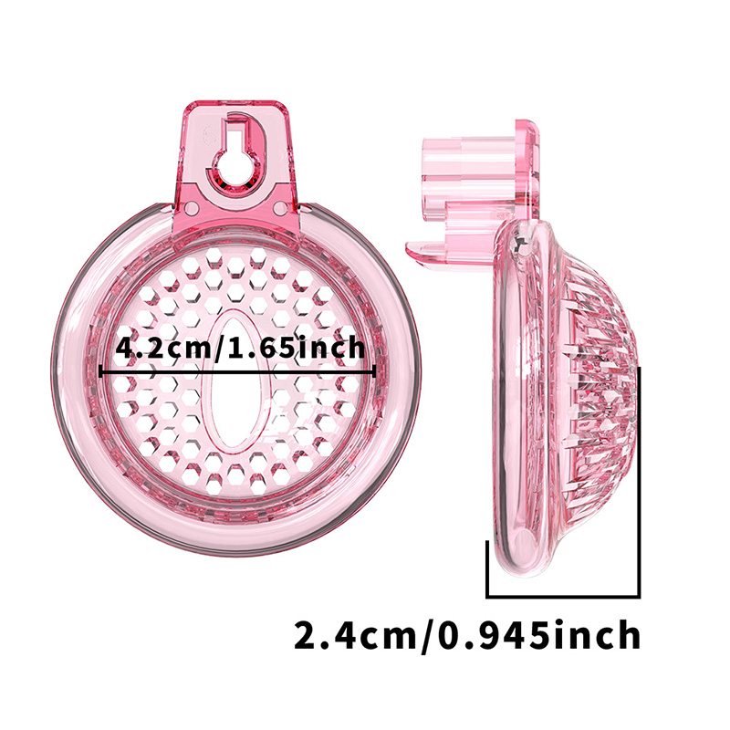Discover a Pink & Transparent Chastity Cage for Men. Featuring 6 adjustable penis rings for secure control. Shop now at Rupipichastity for comfort and secure!