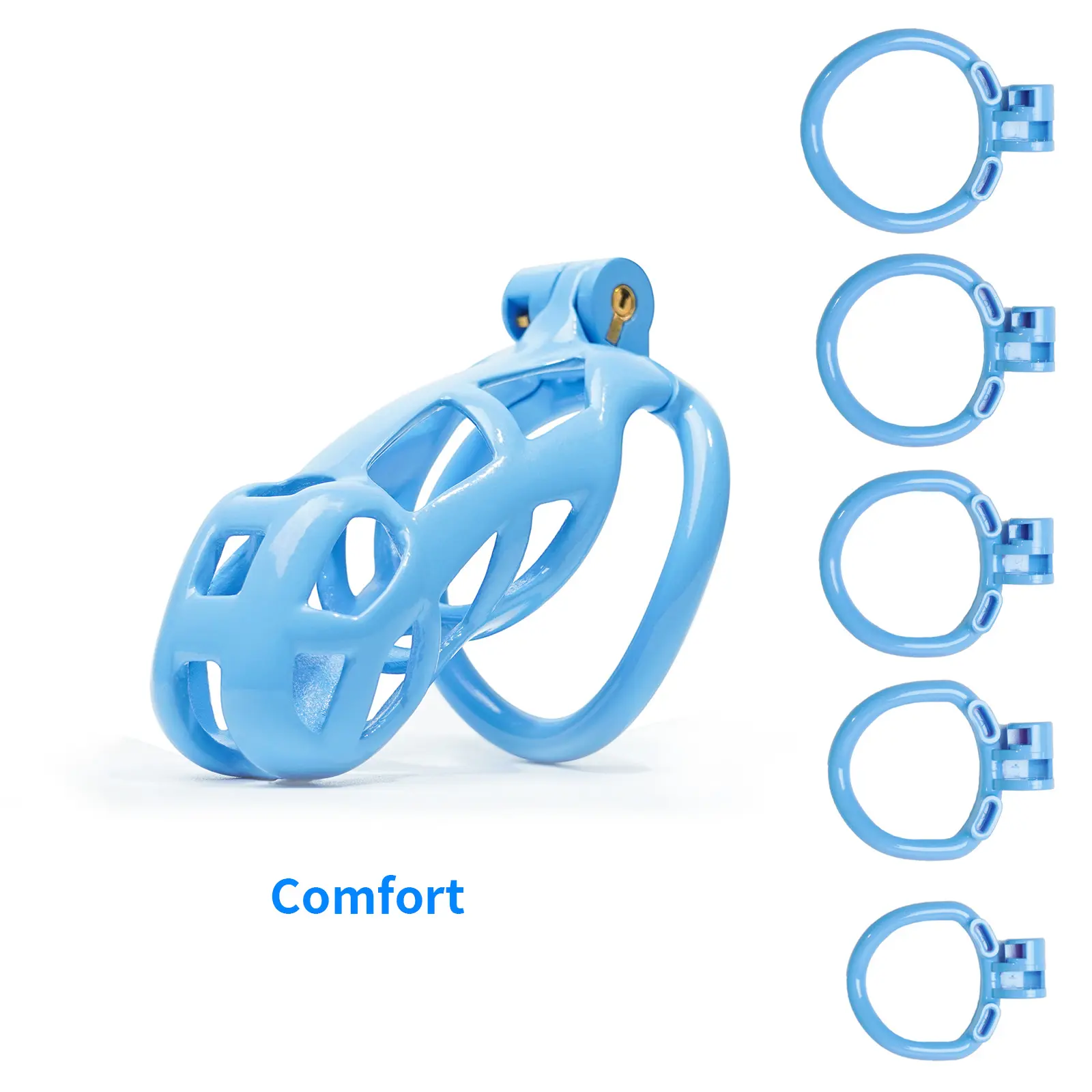 This tough blue plastic chastity cage is one of the most comfortable ones I have ever owned. As long as you adjust the size of the ring precisely, you will have an excellent experience. It features a fashionable and lightweight design, excellent fit, and only the person holding the key can open the lock. So, enjoy it to the fullest! To achieve maximum comfort, please make sure to clean it frequently: take a bath every day and clean the cage with soap and water every day.