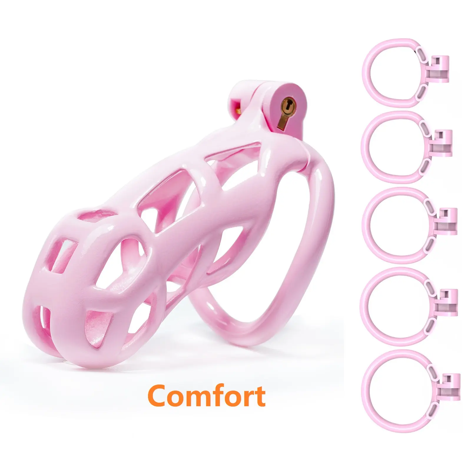 Cobra Cage, 3D Printed Male Chastity Device,5-Ring & Accessories,Restraint Device (Pink)