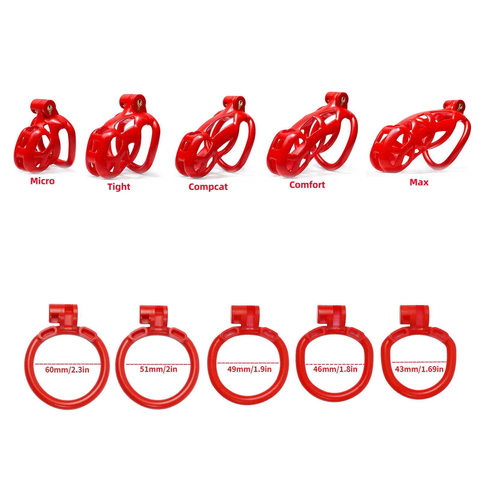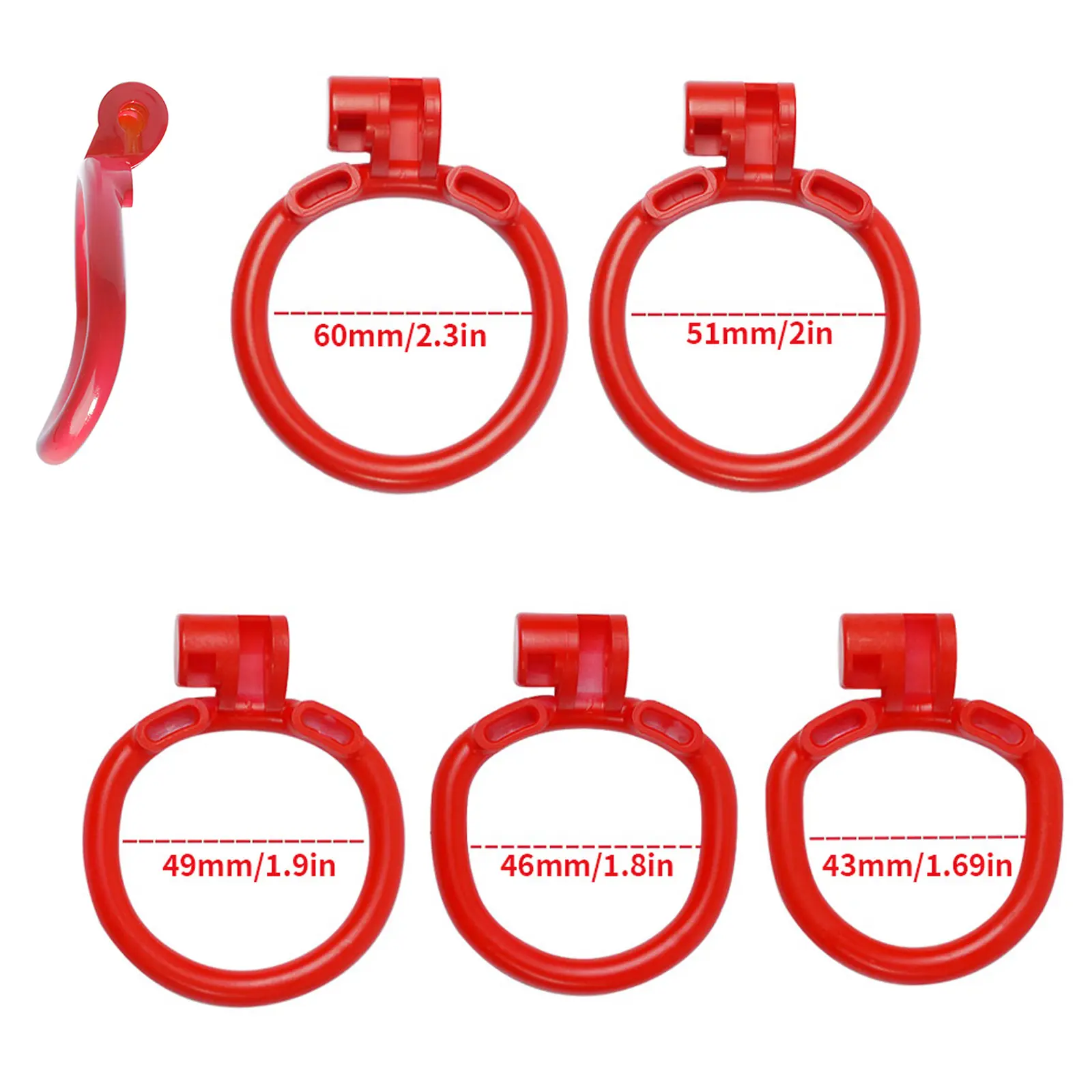 【5 Size Rings】:This chastitay cage comes with six different sized rings. It ensures everyone can find their perfect fit, from petite slaves to robust studs.