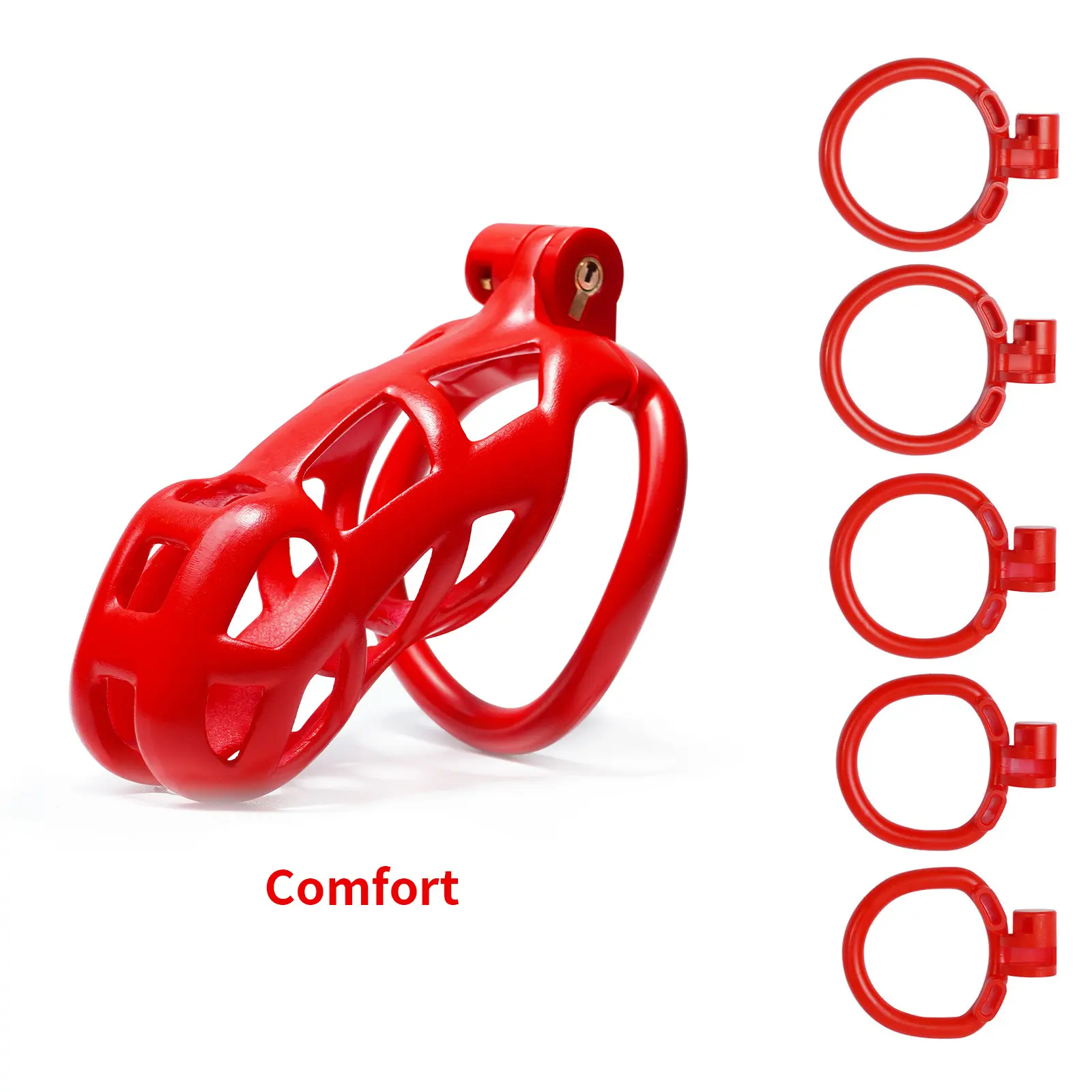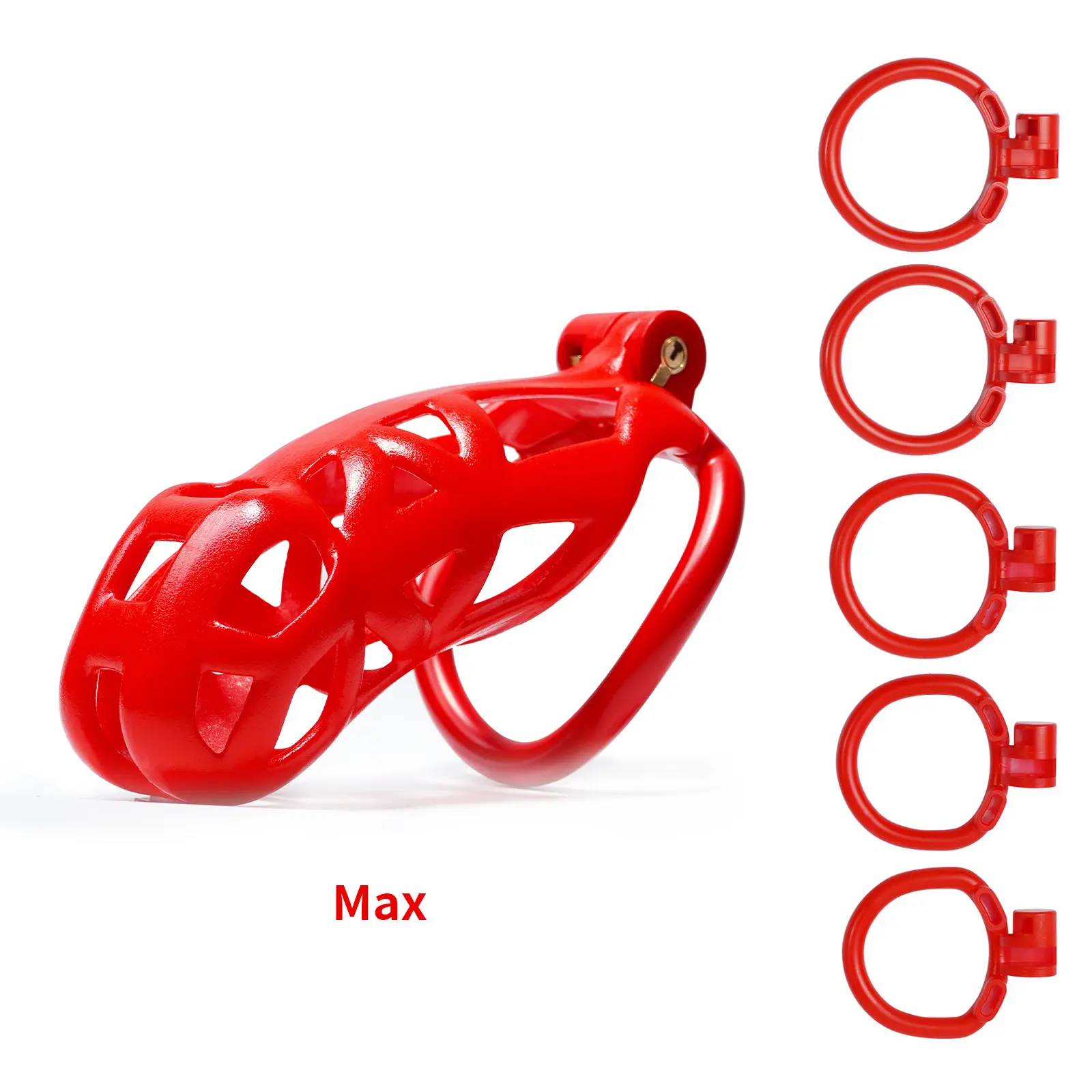 Cobra Cage, 3D Printed Male Chastity Device,5-Ring & Accessories,Restraint Device (Red)