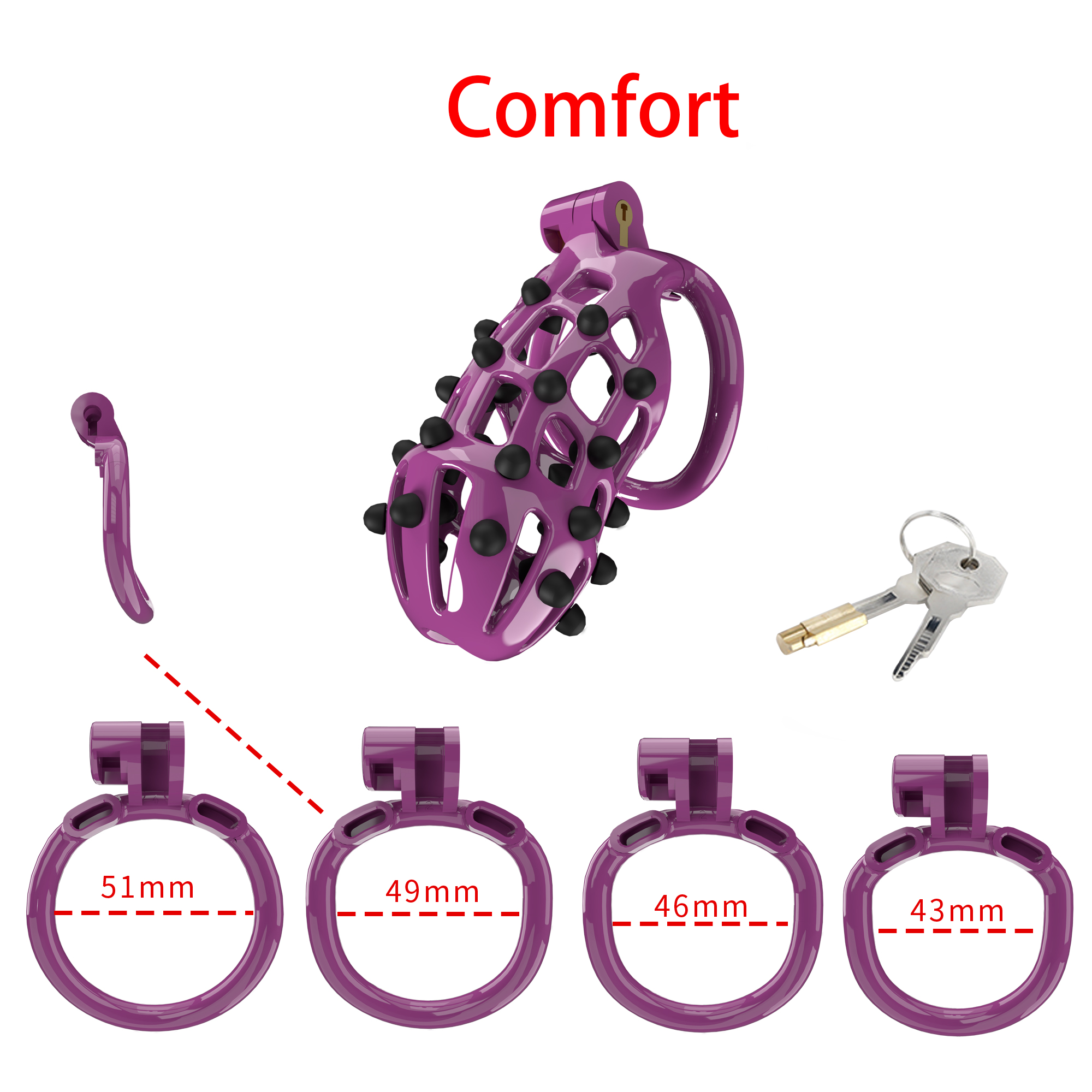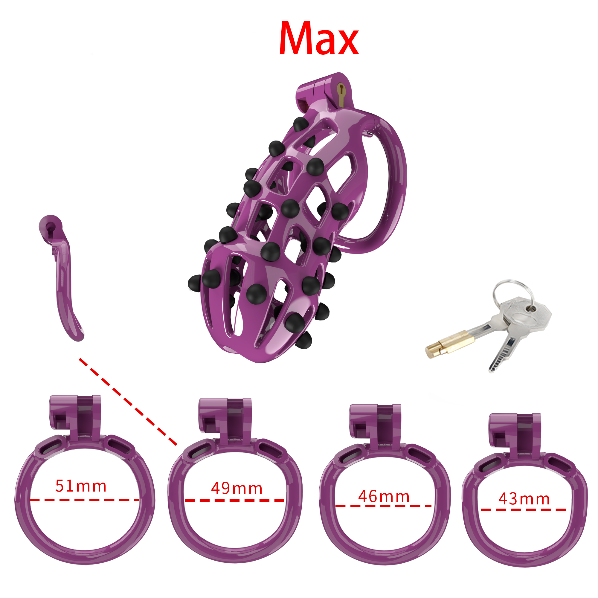 Massage chastity cage with rubber plugs. If you want a more intense experience, this product is definitely your best choice!