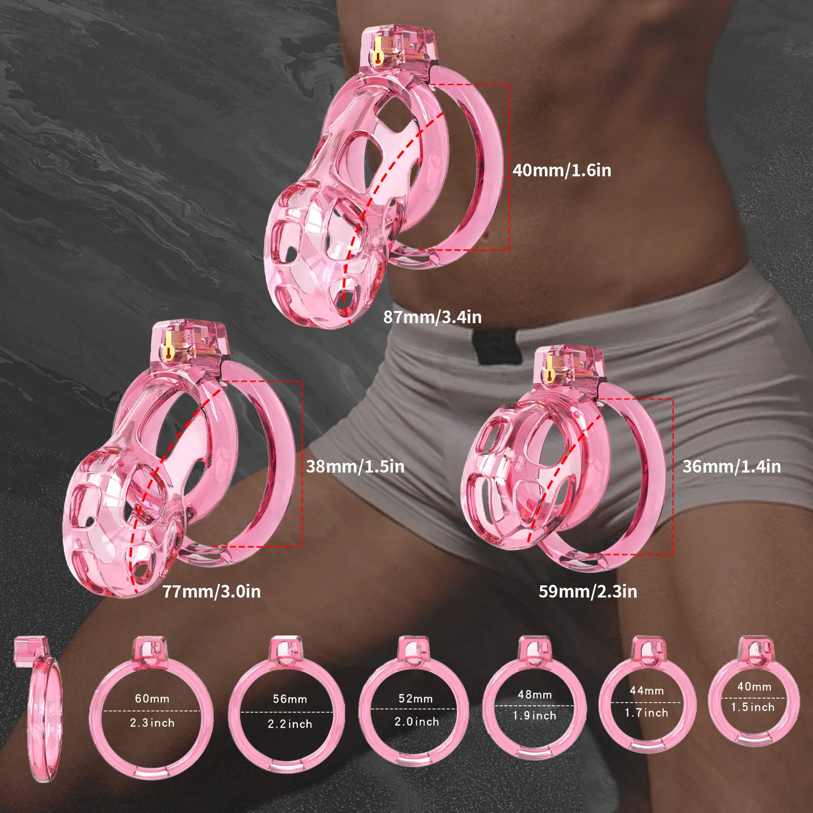 What an awesome find! This cage arrives in discreet packaging and includes a generous set of six base rings, allowing you to perfectly customize the fit. Even the small cage feels incredibly comfortable and is great for keeping a low profile. I’m also a huge fan of the lock design. With three great colors to choose from, this is a total game-changer. Treat yourself—you won’t be disappointed!